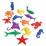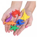 - Setul include 84 de figurine de animale acvatice din plastic moale: 14 specii (crab, delfin, broasca, homar, caracatita, pinguin, foca, calut de mare, rechin, stea de mare, pisica de mare, peste spada, broasca testoasa si balena) in 6 culori (rosu, albastru, verde, galben, violet si portocaliu).