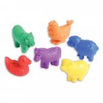 - Setul include 36 figurine de animale domestice din plastic cauciucat, cate 6 specii (gaina, vaca, rata, cal, porc, oaie) si 6 culori diferite (rosu, albastru, verde, galben, violet si portocaliu) si o penseta mare din plastic pentru manevrare.