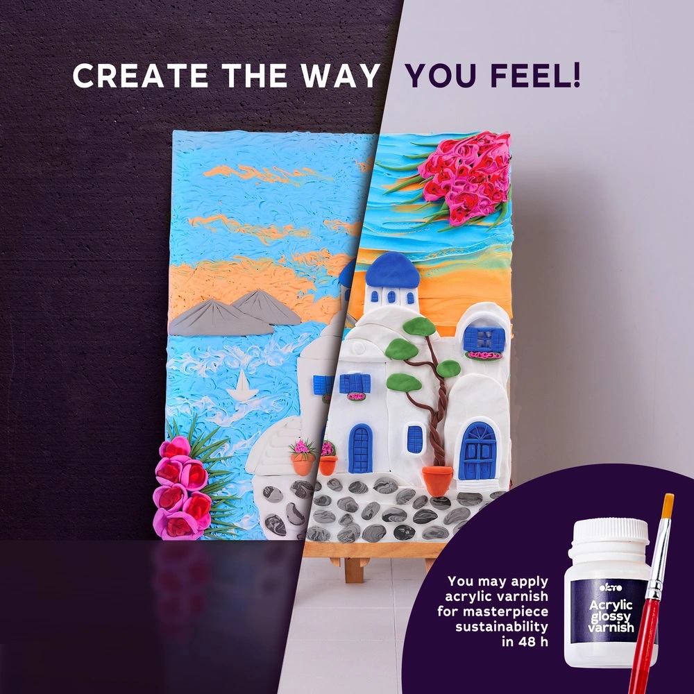 Set pictura 3D cu argila usoara 30x40 cm Santorini