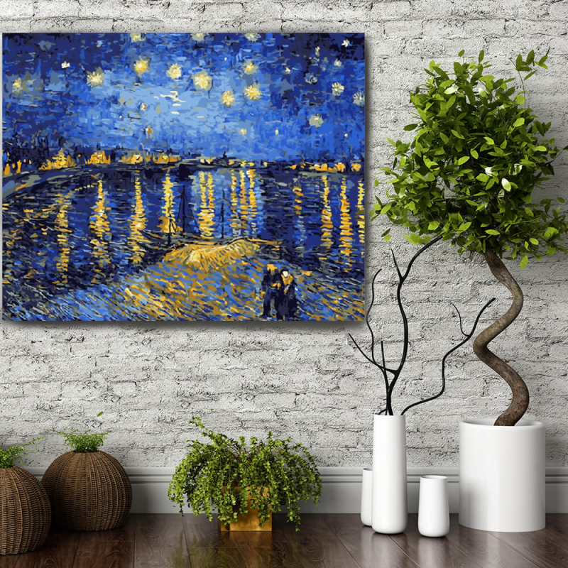 Set pictura pe numere (panza) Noapte instelata peste Rhone Van Gogh 40x50 cm