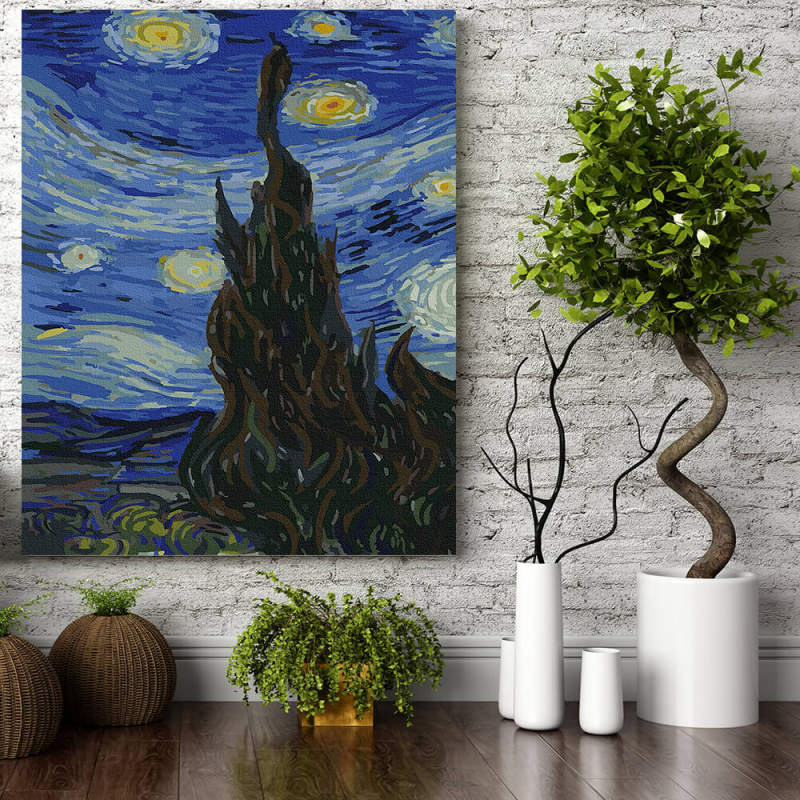 Set recreativ de Pictura pe Numere Noapte instelata - Van Gogh Triptic I 50x40 cm, cuprinde: