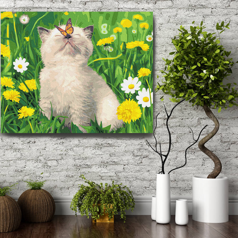Set pictura pe numere (panza) Pisicuta cu fluture pe nas 40x50 cm