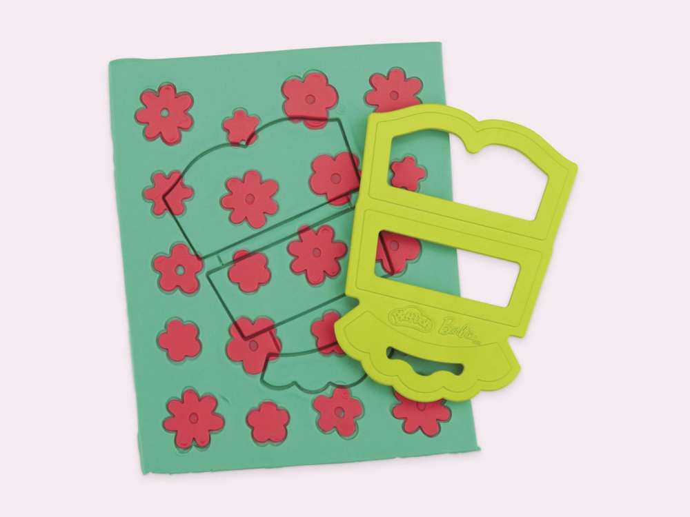 Pur si simplu aseaza papusa pe suport, foloseste foaia cu modele Play-Doh si decupatoarele pentru a croi tinute Barbie si imbrac-o in cele mai creative moduri imaginabile.