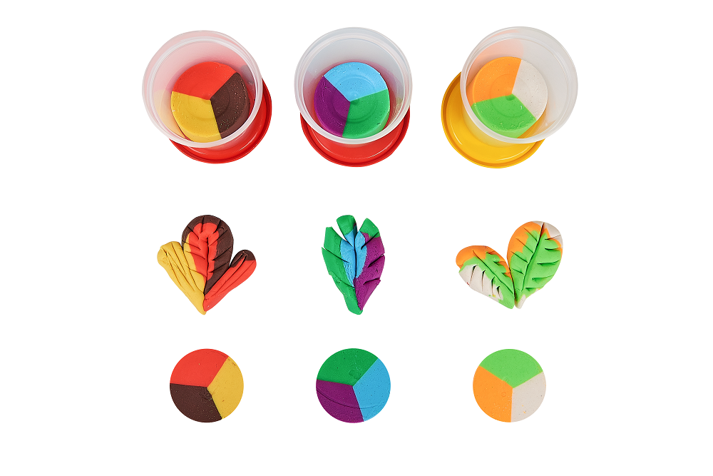 Fiecare ceasca contine 3 culori de modelat, care pot fi separate daca se doreste, sau experimentate amestecându-le împreuna.