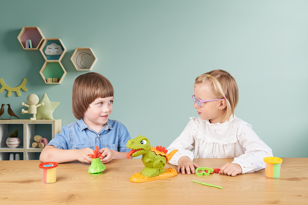 Jucaria cu dinozaur din plastic va permite sa stoarceti vârfurile reci si o limba din plastilina într-un mod amuzant, facând jocul copiilor cu adevarat incitant.