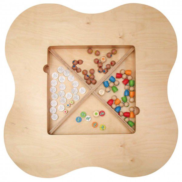 Forma speciala a mesei permite copiilor sa acceseze usor locasul de joaca dedicat.Setul vine cu 4 jocuri ( Prinde-ma, Turtle Island, Maripoza, Squiro) care ajuta copiluil dvs sa invete sa se concentreze si distreze.