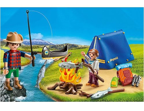 Setul inlcude 2 figurine, un cort, o canoe si multe alte accesorii.