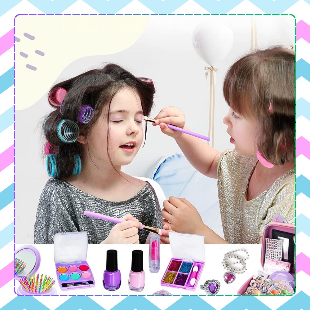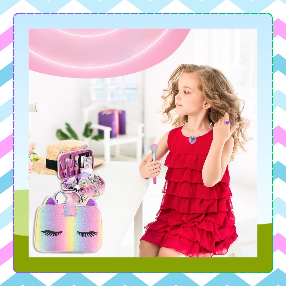 * Descopera magia machiajului si creeaza look-uri fabuloase! Cu acest set special, micuta ta va fi o adevarata artista a frumusetii.