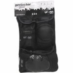 Setul contine 6 piese: 2 protectii coate, 2 protectii genunchi, 2 protectii palme/incheieturi.