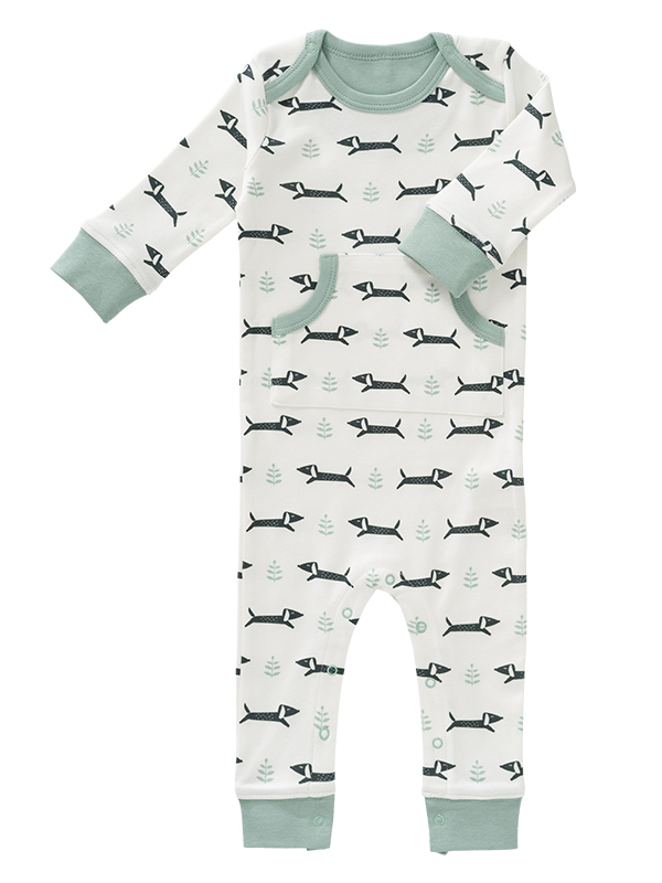 ● Salopetă bebeluși, fără botoși, din bumbac organic, model Dachsy, mărime 3-6 luni