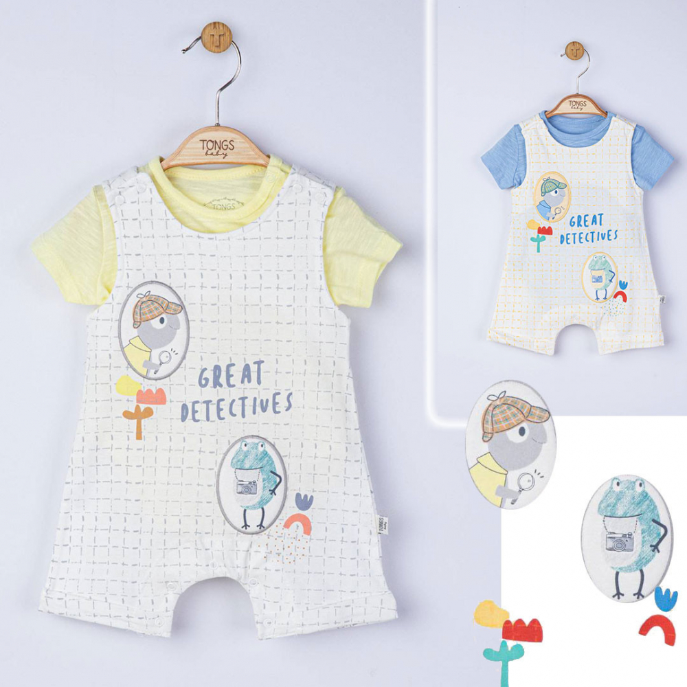 Set salopeta cu tricou Great detectives Tongs baby Galben 3-6 Luni