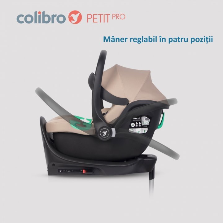 * Setul PETIT PRO de la Colibro beneficiaza de ultimul standard de siguranta european R129 i-Size, ceea ce garanteaza cel mai inalt nivel de siguranta pentru copil in timpul unei calatorii cu masina.
