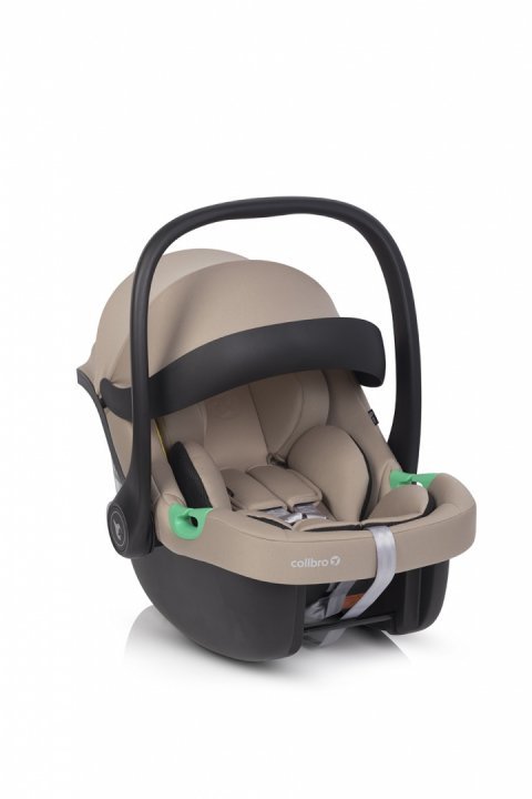 Set scoica auto si baza isofix, Colibro Petit Pro, pentru copii intre 40-87 cm sau 0-13 kg, i-Size, omologat R129, cu copertina si maner de transport ajustabil, Camel