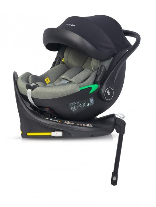 Set scoica auto si baza isofix rotativa EasyGo Buz Pro i-Size, omologat R129, cu tetiera reglabila in inaltime, copertina ajustabila, pentru copii intre 40-87 cm sau 0-13 kg, Greener