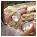 - Setul include 10 pietre de rau in trei dimensiuni diferite (13 x 6.5 cm; 16 x 8.5 cm; 19.5 x 10 cm), avand inserate sase texturi diferite.