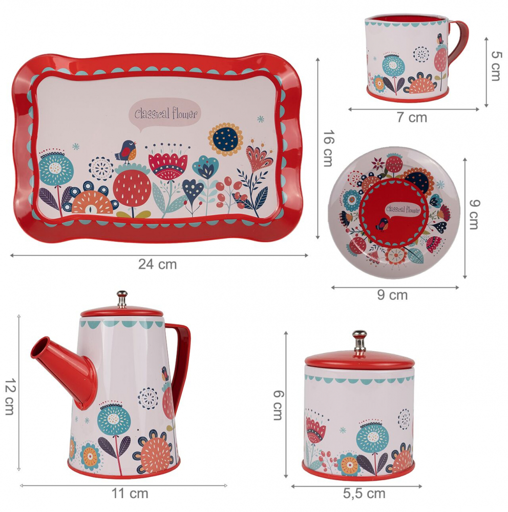 Set serviciu din metal pentru servit ceaiul cu tavita