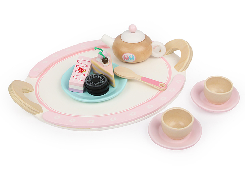Un element unic al setului este o tava frumoasa din lemn cu manere confortabile, care va permite gazdelor mici sa serveasca ceaiul intr-un mod elegant.