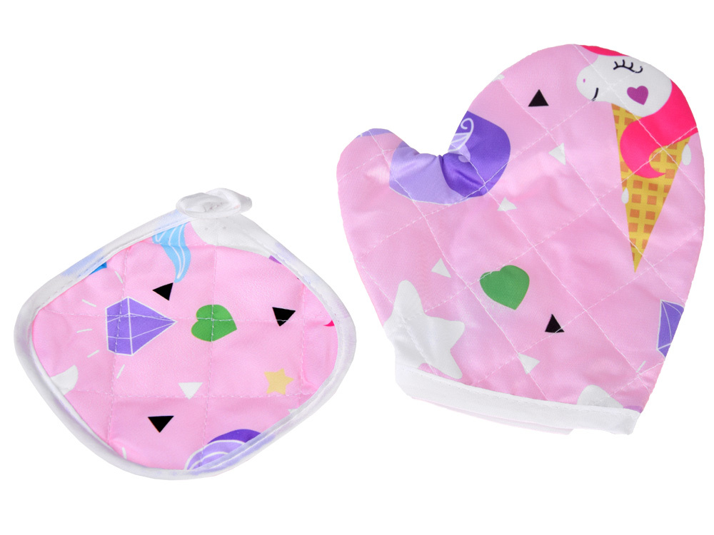 Set sortulet de bucatarie pentru copii, unicorn, cu Boneta si pana la 11 accesorii de gatit incluse