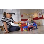 Setul contine doua vehicule o masina de pompieri si un vehicul de politie, dar este compatibil si cu alte masinute de jucarie de la branduri cunoscute.