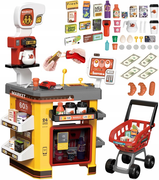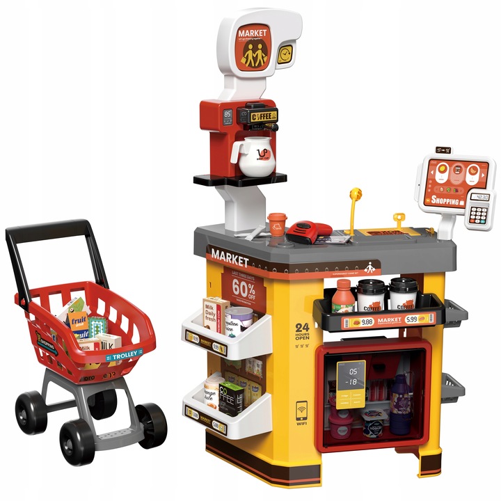 Set supermarket cu scanner casa de marcat si 65 accesorii incluse Yellow
