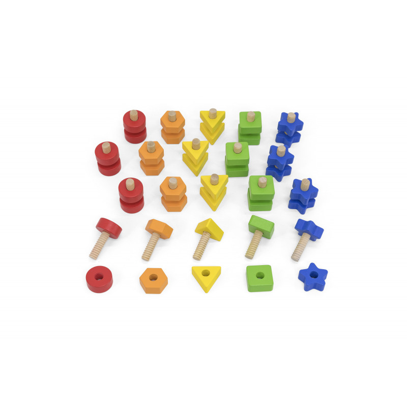 Acest set de 40 de piese include 20 de perechi de piulite si suruburi in 5 culori si forme vibrante.