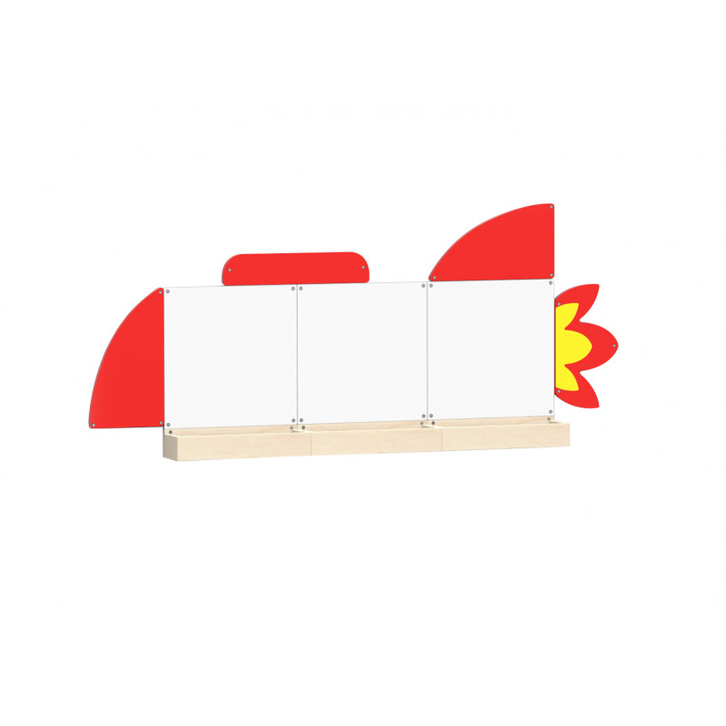 Setul contine un set de 3 table cu dublu rol (magnetice si de scriere), tavita suport din lemn, blocuri decorative din lemn colorate redand imaginea unei rachete.