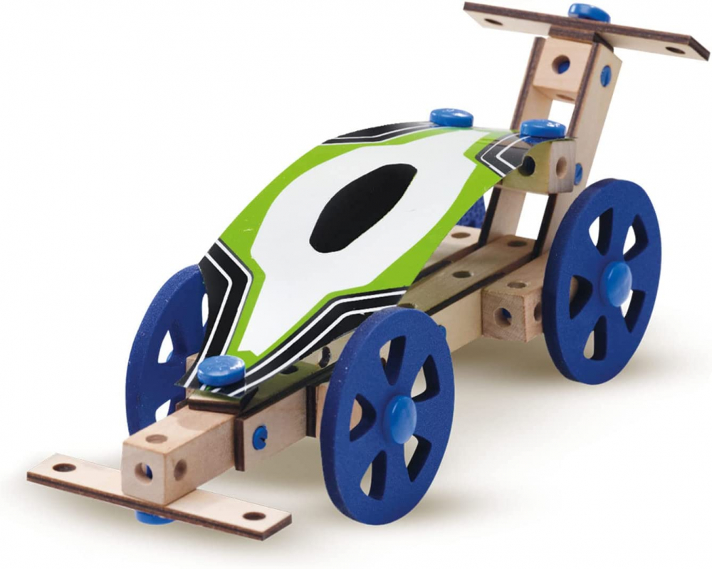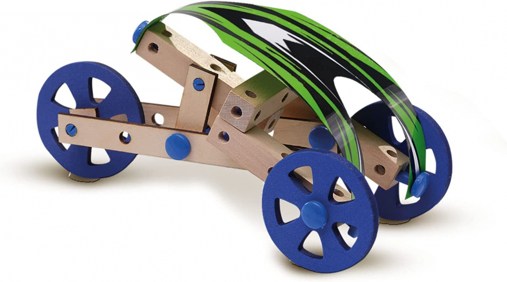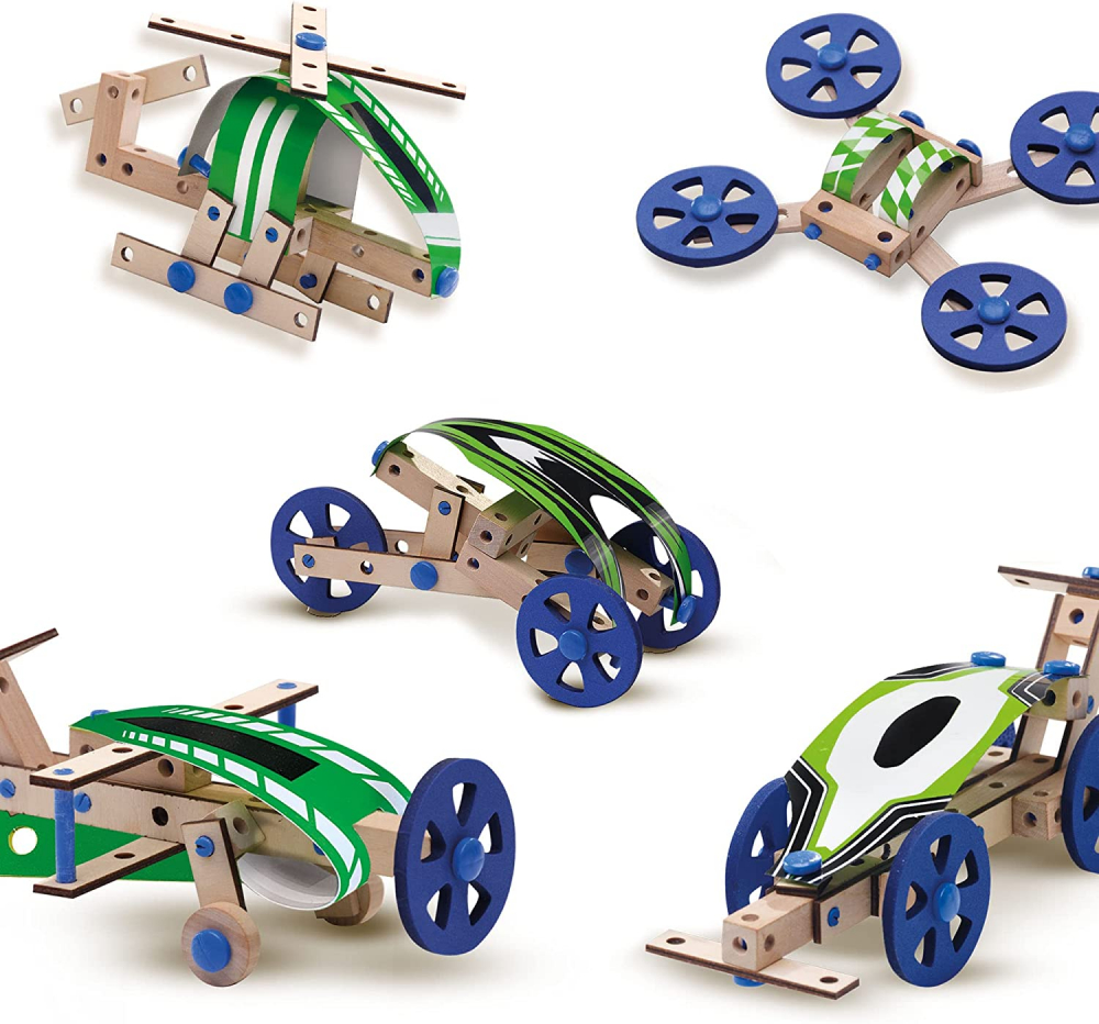 Construiti singur aceste vehicule robuste, cu ajutorul diferitelor piese, inclusiv un ciocan de lemn, roti din spuma si diferite dimensiuni ale blocurilor de lemn.