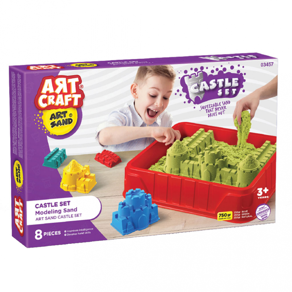 Set Tavita cu Nisip Kinetic Art Craft Castle Multicolor 750 grame cu 8 accesorii