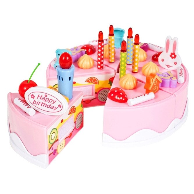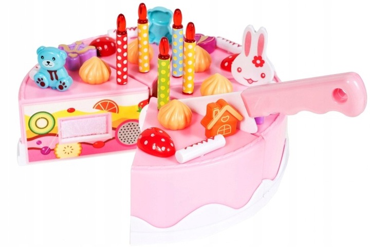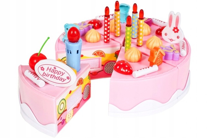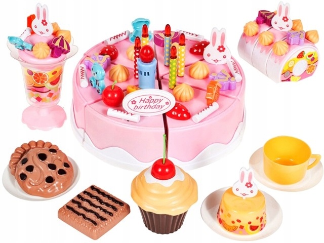 Set Tort aniversar cu Lumanare luminoasa, melodie La Multi Ani, cu 75 de accesorii, Cutit din plastic si Rulada asortata Birthday Cake