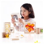 - Fiecare copil isi va putea personaliza blocurile transparente cu obiectele dorite, putand stoca in interior: margele, crengute, frunze, pene, jucarii mici, flori, scoici si multe altele.