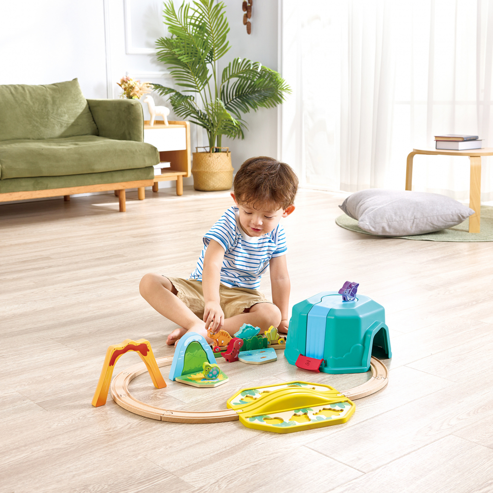 Completati dragostea copilului dumneavoastra pentru dinozauri si trenuri cu acest set de tren dragut, dar robust!