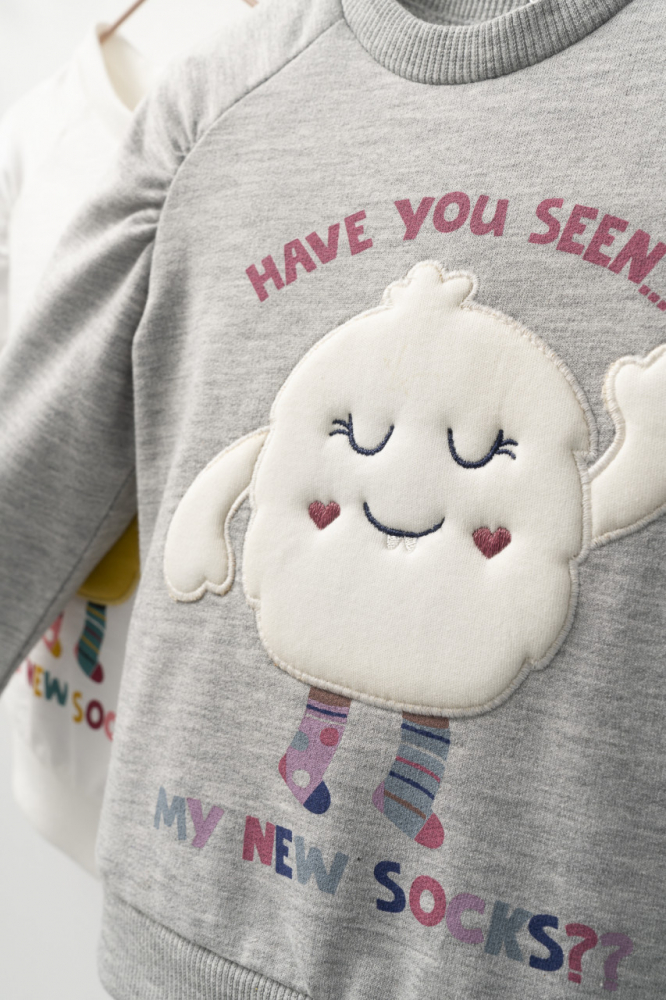 - bluzita cu capse cu maneca lunga, cu design modern, cu imprimeu haios