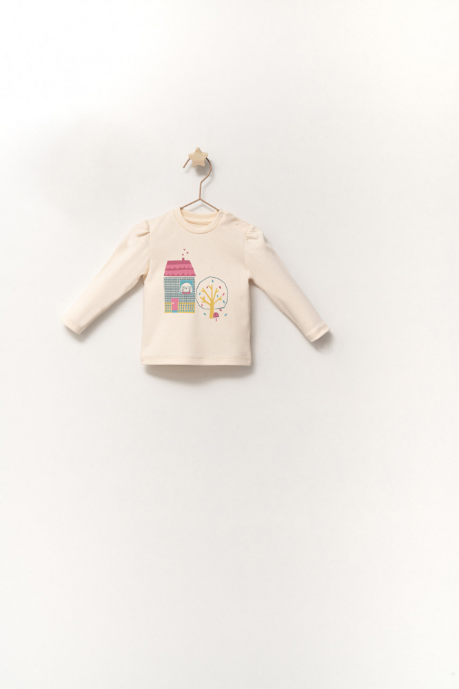 - bluzita cu capsela umar, cu maneca lunga, cu design modern, cu imprimeu haios;