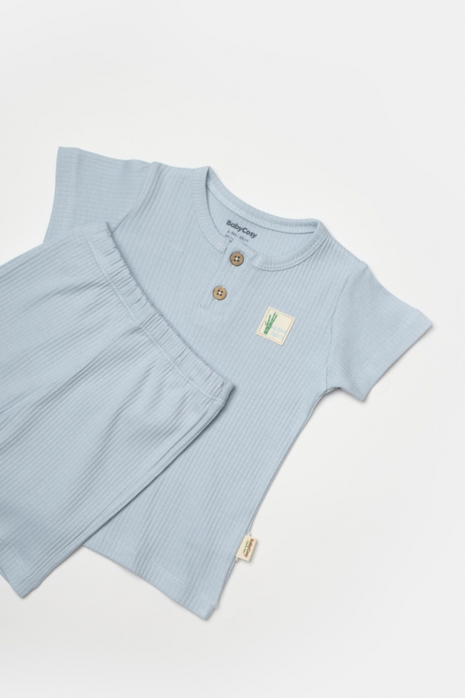Set tricou cu pantaloni Bamboo, blue, BabyCosy, 50% bumbac organic + 50% bambus, marime 12-18 Luni