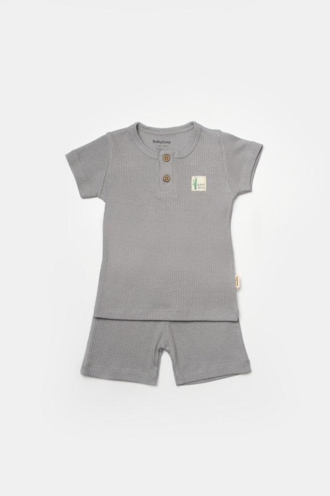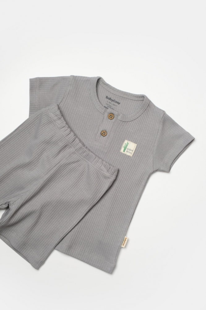 Set tricou cu pantaloni Bamboo, gri, BabyCosy, 50% bumbac organic + 50% bambus, marime 18-24 Luni