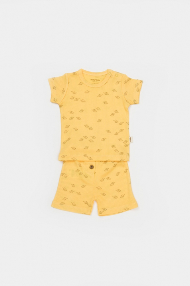Set tricou cu pantaloni Printed, galben, BabyCosy, 50% bumbac+ 50% modal, marime 3-6 Luni