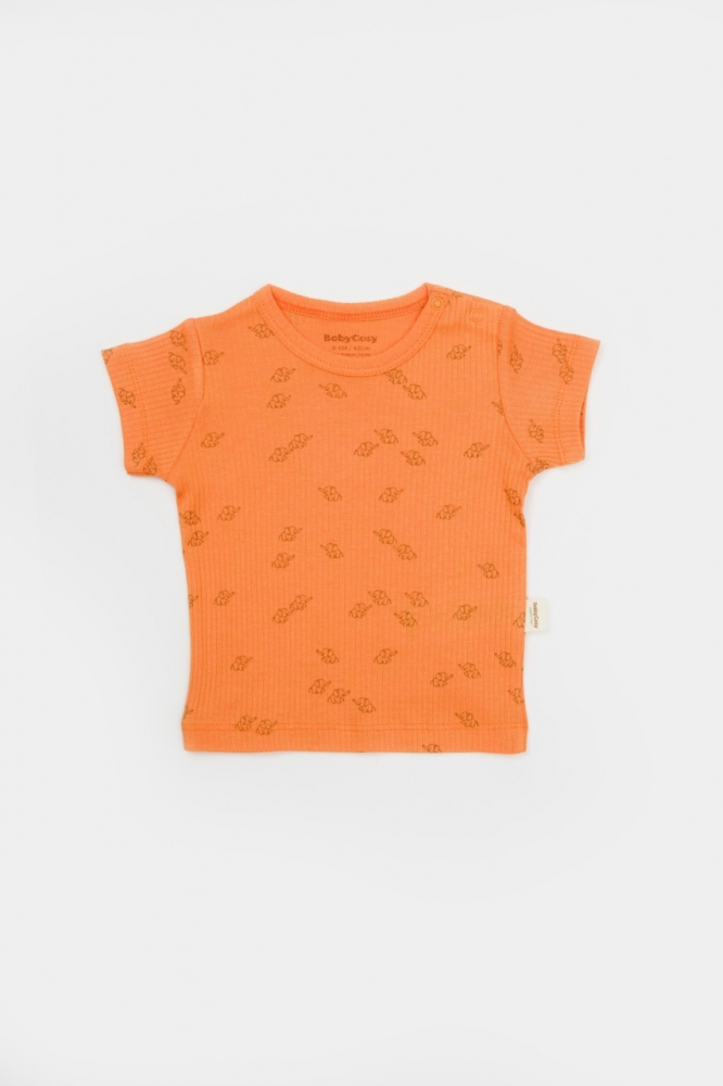 Set tricou cu pantaloni Printed, portocaliu, BabyCosy, 50% bumbac + 50% modal, marime 3-6 Luni