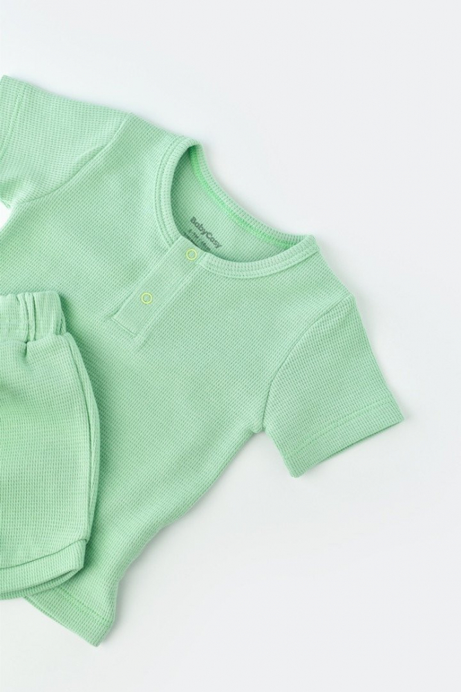 Set tricou cu pantaloni scurti bumbac organic Mint 3-6 Luni