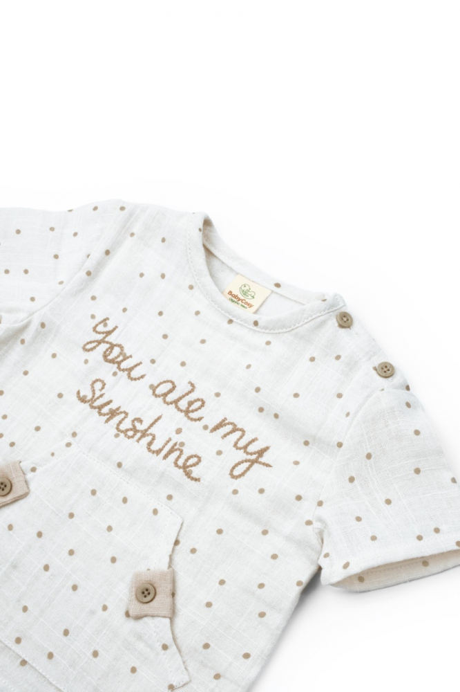 Set tricou cu pantaloni scurti TeddyBear, 100% bumbac organic, BabyCosy, marime 3-6 Luni