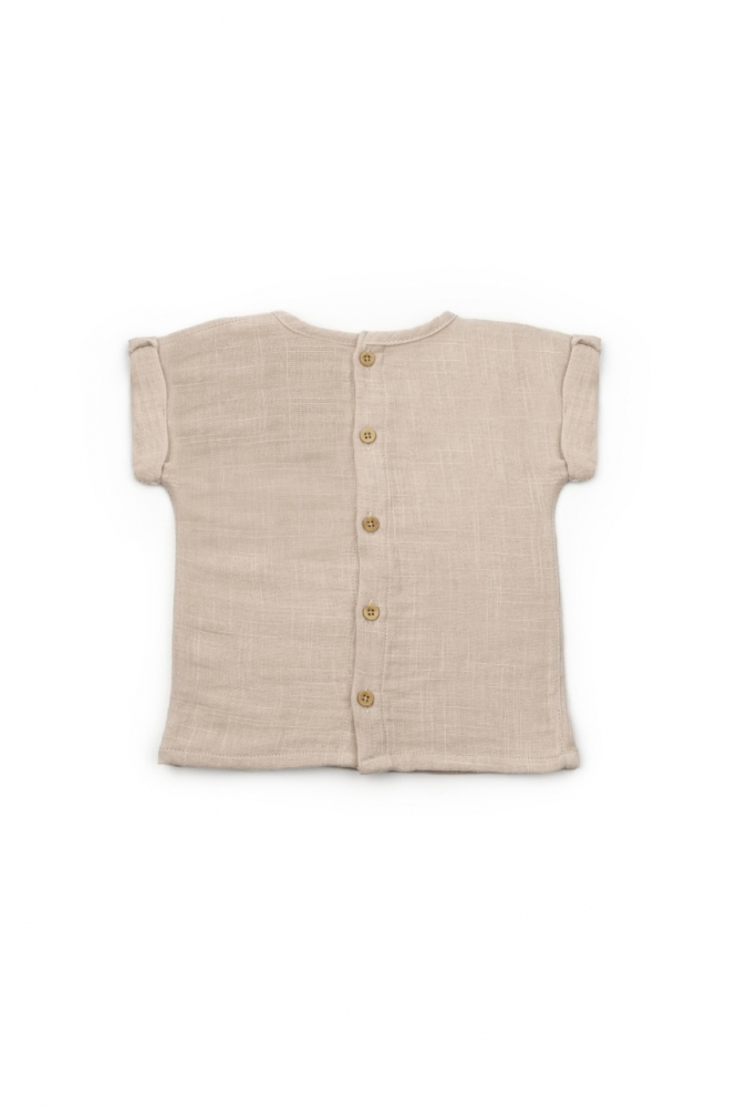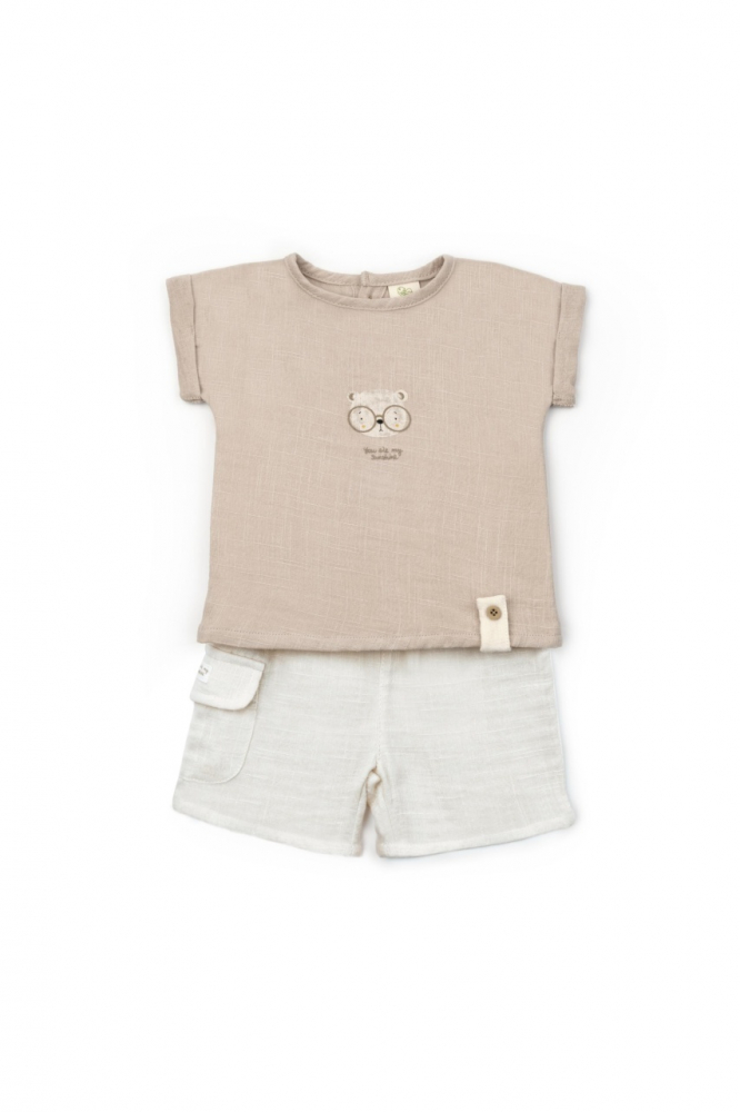 Set tricou maro cu pantaloni scurti TeddyBear, 100% bumbac organic, BabyCosy, marime 18-24 Luni