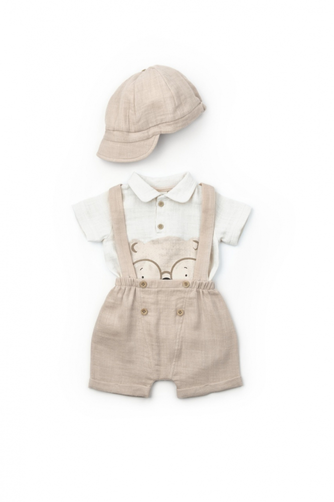 Setul format din tricou, salopeta si sapca TeddyBear este perfect pentru zilele calde de vara.