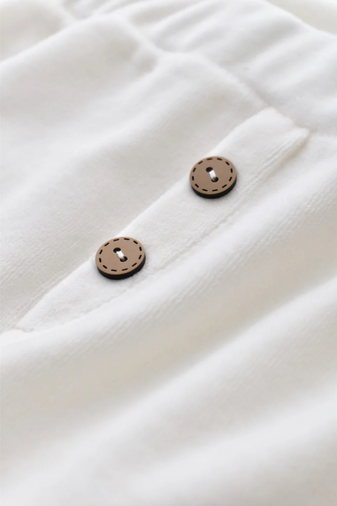 - Pantalonasii sunt prevazuti cu mansete in partea de jos. De asemenea, au in fata un slit fals cu 2 nasturei