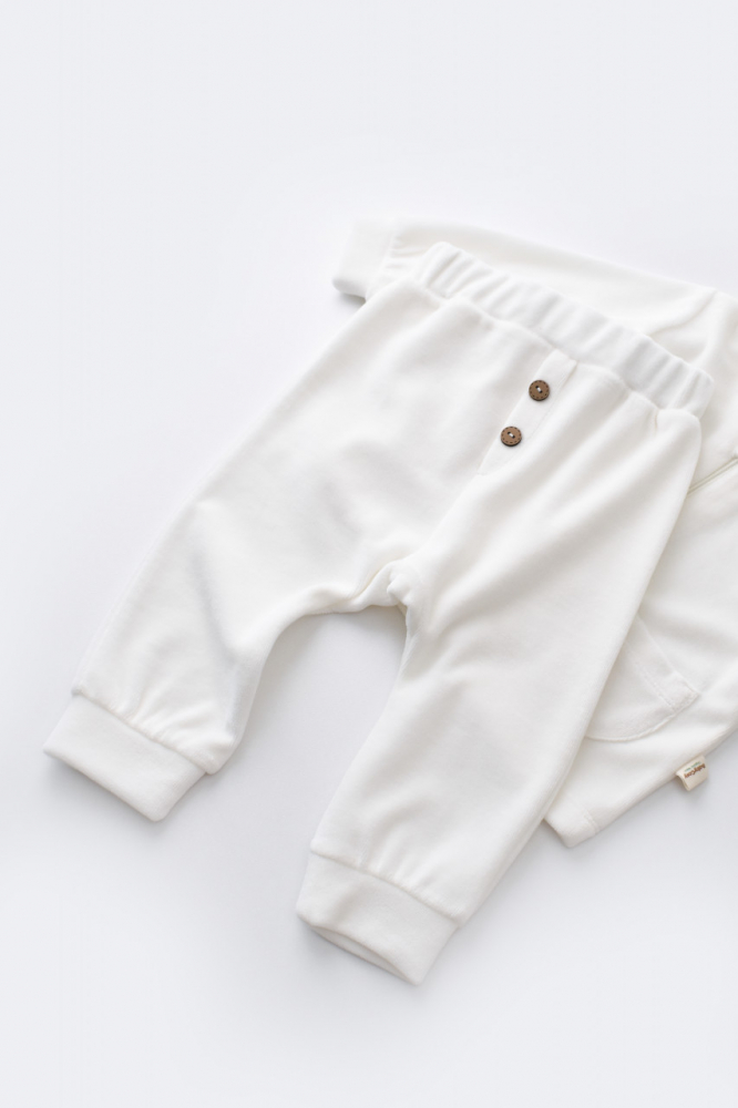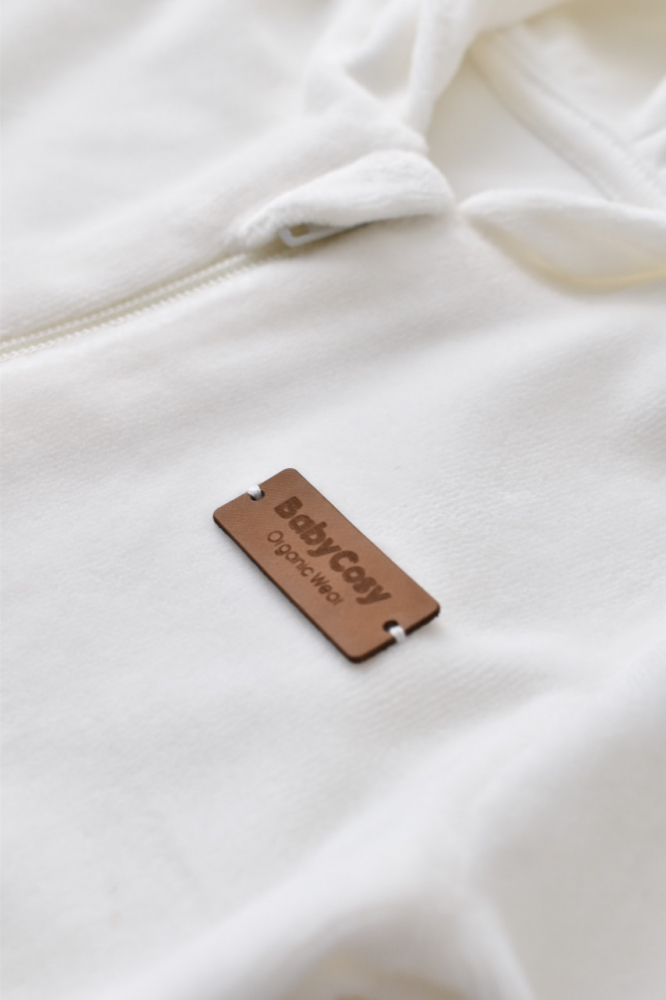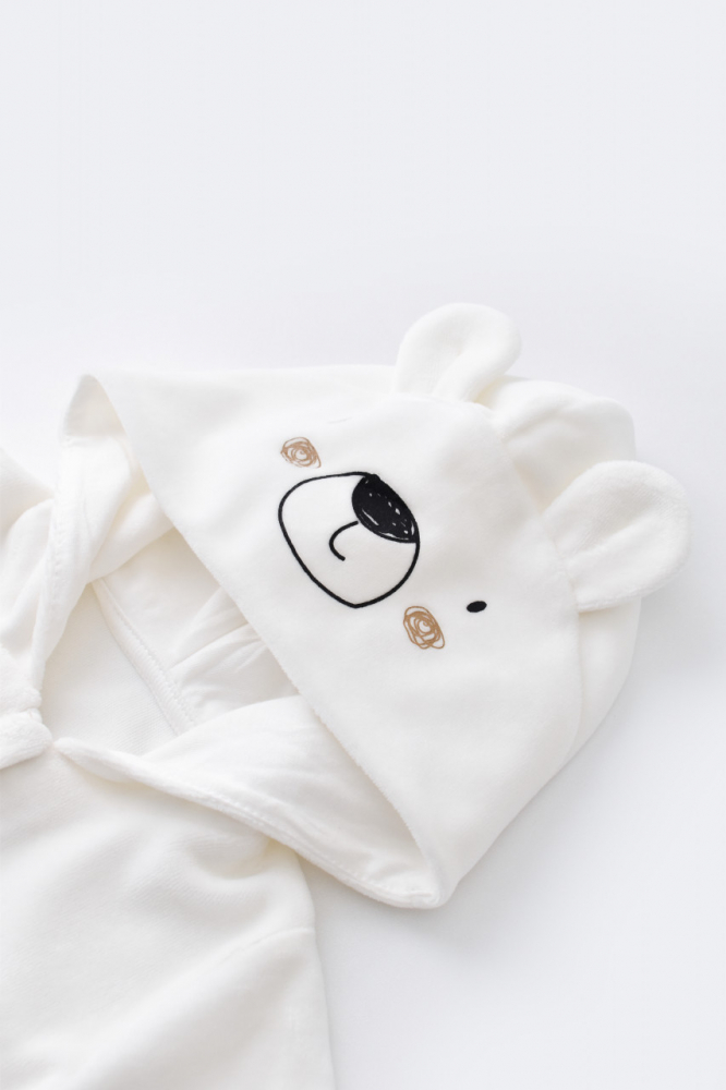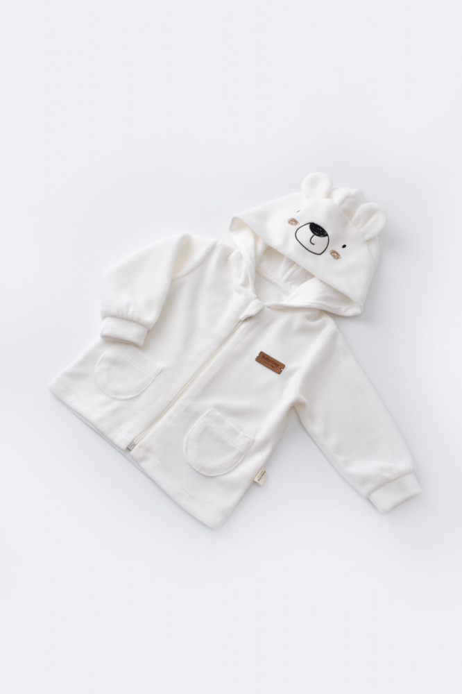 Set Ursulet cu bluzita cu fermoar si gluga si panataloni lungi Baby Cosy din 80% bumbac organic si 20% poliester Ecru 12-18 luni