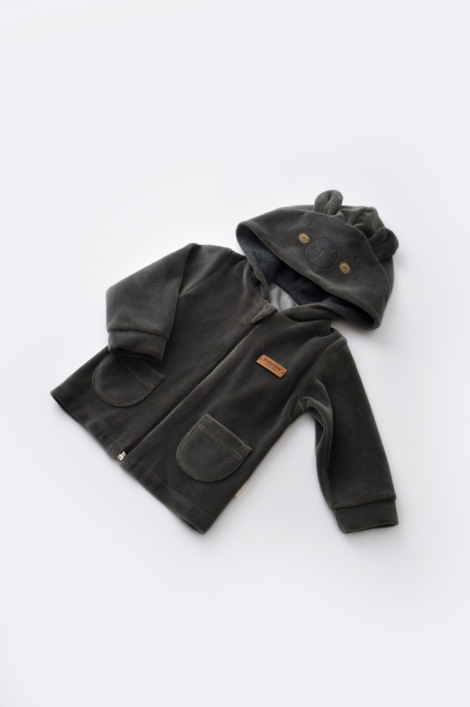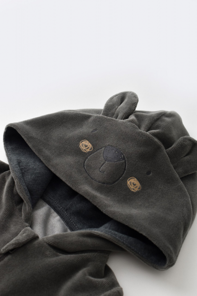 Set Ursulet cu bluzita cu fermoar si gluga si panataloni lungi Baby Cosy din 80% bumbac organic si 20% poliester Antracit 3-6 luni