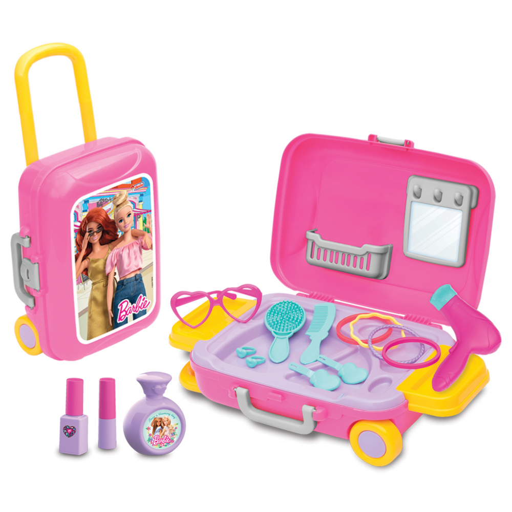 Set valiza pentru fetite cu accesorii pentru frumusete Barbie