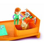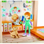 Peretele si podeaua se deschid pentru a crea o gradina si o zona de ingrijire in aer liber. Include 1 papusa, 1 caine cu casa pentru caini, 1 pisica cu casa pentru pisici, boluri pentru mancare si apa, echipament veterinar si de ingrijire, 3
