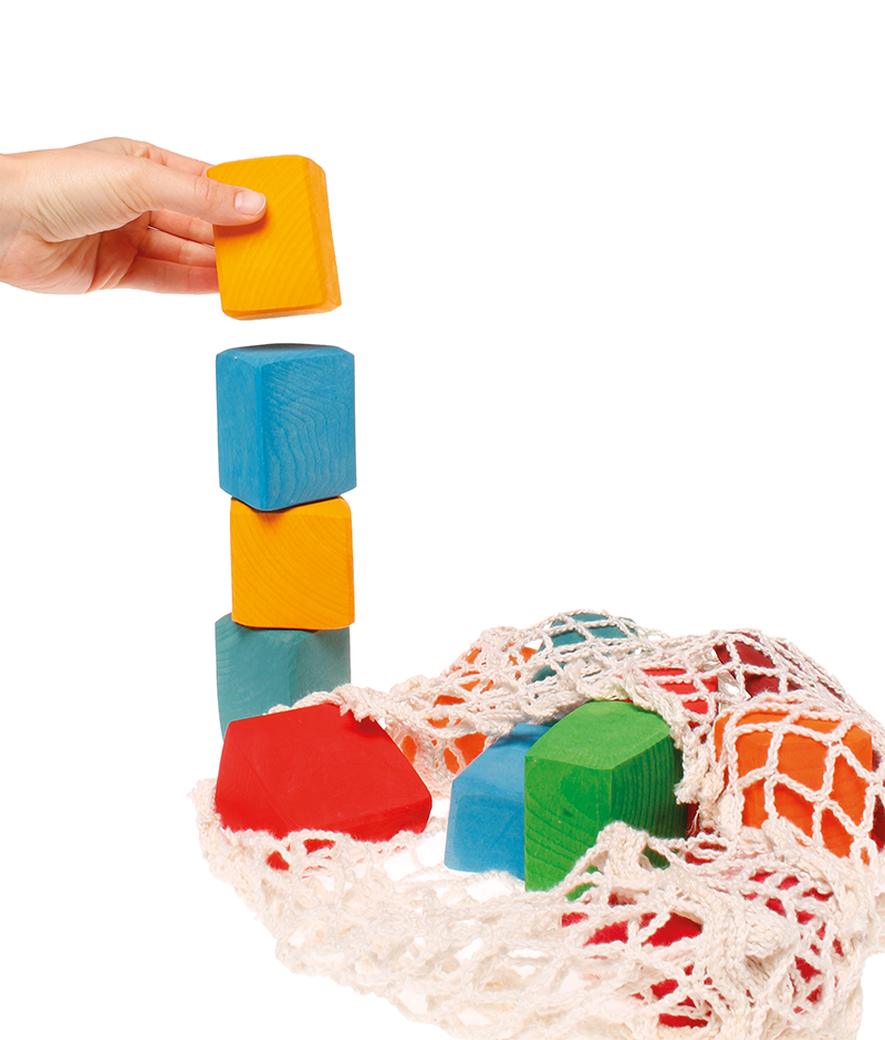 Dimensiuni: 15 blocuri divers colorate in plasa din material textil.