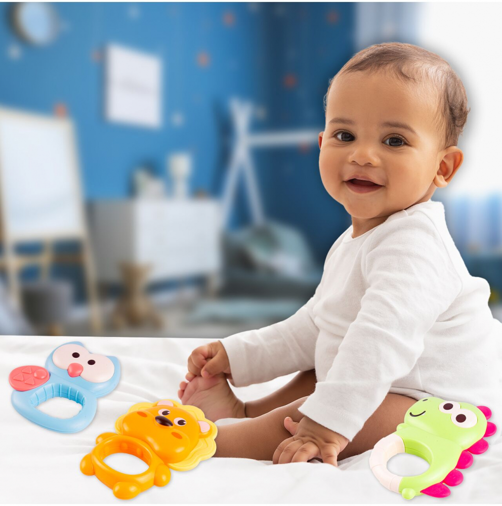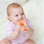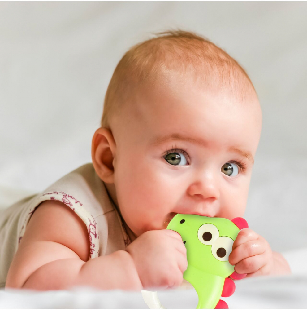 Inainte de a-i oferi copilului dvs. jucaria dedentitie, spalati-le sub jet de apa si clatiti-le.