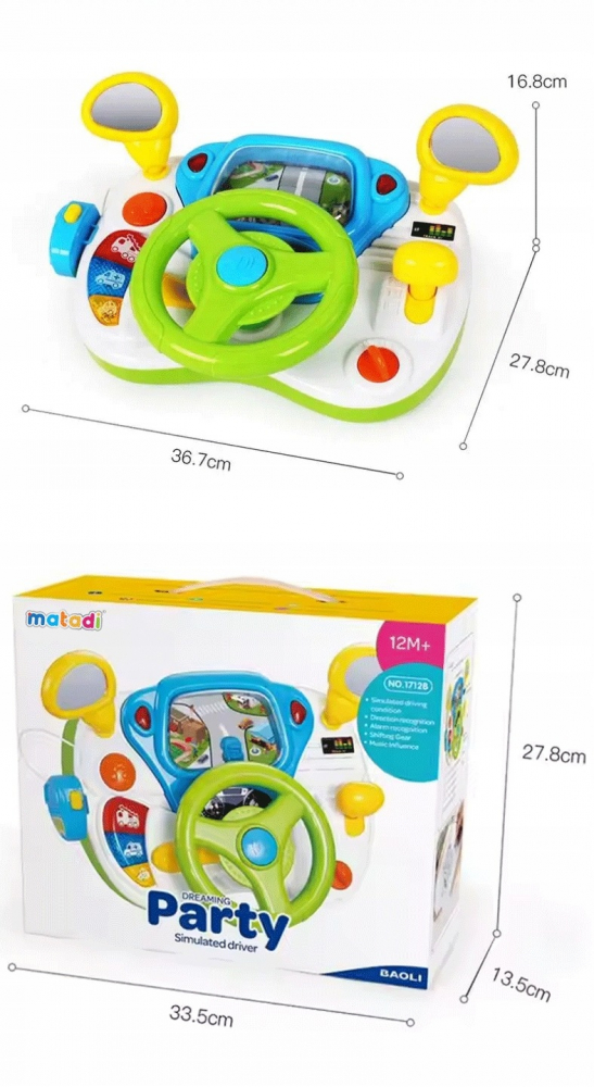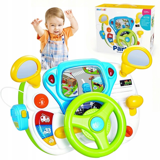 - Design: culorile stralucitoare, vii si detaliile reproduse realist fac din simulatorul de conducere nu numai o jucarie preferata, ci si un aspect grozav in camera unui copil.
