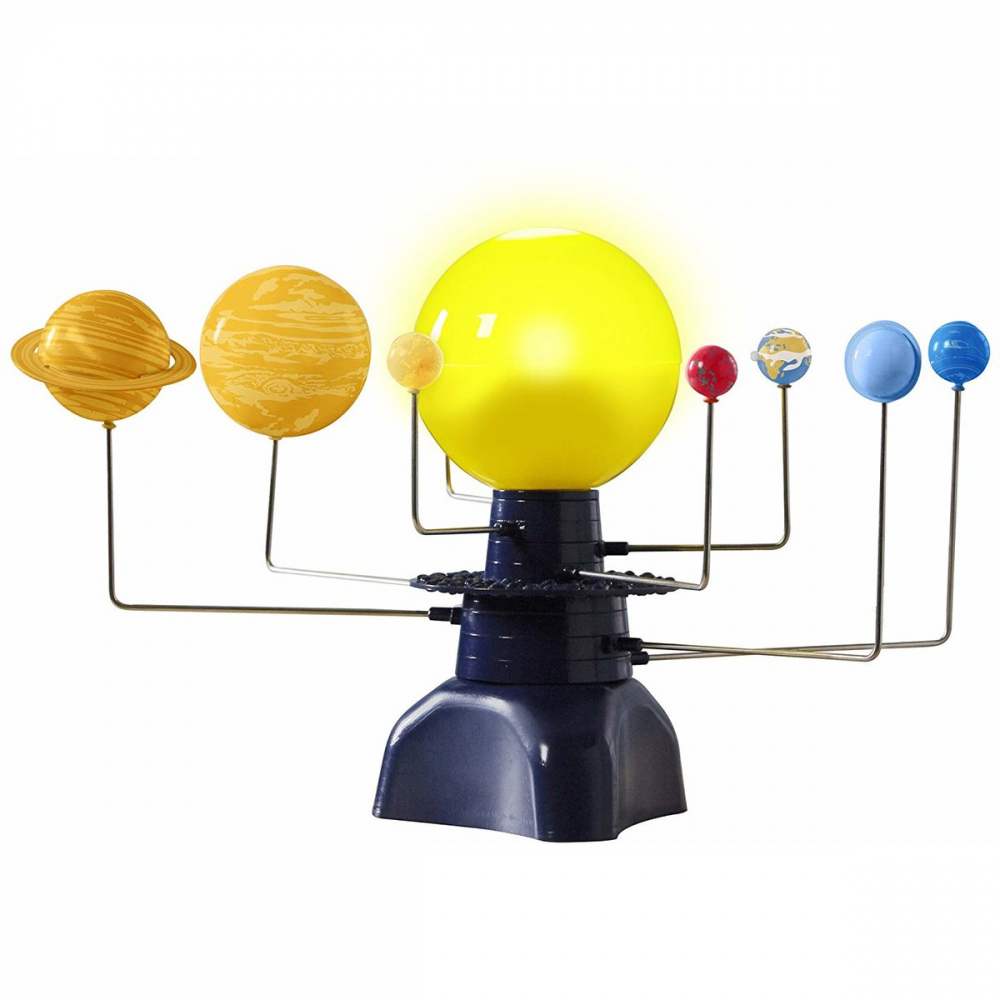 Sistemul solar motorizat il va ajuta pe copilul tau sa inteleaga miscarea planetelor in sistemul solar, dar si rolul atat de important al soarelui. Soarele straluceste pentru cele 8 planete care orbiteaza in jurul sau. Copiii isi vor forma o imagine mai corecta asupra sistemului nostru solar cu ajutorul acestui model motorizat care se roteste. Apoi transforma soarele intr-un planetariu pentru a vedea indeaproape stelele. Imaginea sistemului solar se proiecteaza pe tavan in orice incapere intunecata.
